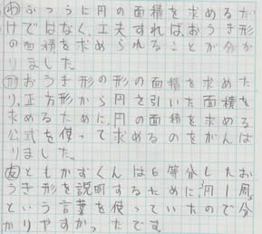 円の面積の公式を使って面積を求めたことについて、全体で話し合う。 |