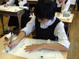「鳥獣人物戯画(甲巻)」のレプリカを提示し,前時の活動を振り返らせる。 | |