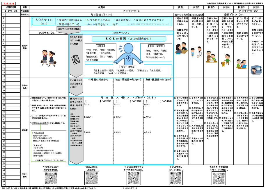 教職員が協力、連携を図りながら子供の状態を共有し、実態を見立て、早期対応が必要な子供を発見するとともに、その後の支援について見通しをもつことができるツールです。