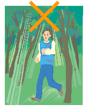 雷は木に落ちます。しかし,その木から電気の流れやすい人間に飛び移ってくることがあります。木や枝先から2m以上離れていなければ危険です。木が密集した森林を避け,できるだけ速く木がまばらなところを探して移動します。そして,保護範囲に入って両足を地面に付けて,姿勢を低くしておくことです。運良く近くに建物があれば,雷の合間をぬって,その中に逃げ込めれば大丈夫でしょう。