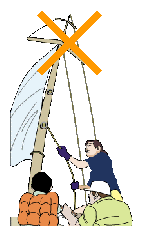 ヨットに乗っている場合は,マストから離れ,突風や落雷を受けないように雷の合間に帆やマストをたたみます。エンジンや取っ手,オールなどの突起物から離れ,姿勢を低くして雷の去るのを待ちます。船に落雷すると,船底に穴が空くことがあります。