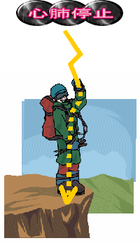 問題は,心臓や呼吸の停止です。1人でいるときに落雷があればどうすることもできませんが,近くに落雷を受けなかった人がいれば,一刻も早く「心肺蘇生」を行うことです。心肺が停止してから時間が経つほど蘇生率が悪くなり,停止してから4分で,蘇生の確率50%と言われています。実際に,命を取り留めた例があります。雷に撃たれればもうダメだと思ってしまいかねないですが,雷撃を受けてもまだ助かる道は残されています。よほど大きなエネルギーの落雷でない限り,助かるかも知れません。やけどは致命的ではないので,「停止した心肺を動かせば助かる」ことを信じて,心肺蘇生法を身に付けておきましょう。ただ,次の雷撃を受けないように,二次災害をくい止めなければなりません。