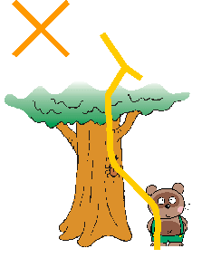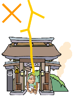 雷は,高いところやとがったところに落ちる性質があります。高い建物に落ちたときにはどうなるでしょうか。避雷針に落ち,金属を伝って電気が大地に逃げれば問題はありません。しかし,避雷針以外に落ちる場合がたびたびあります。そうしたときには,建物の表面を伝わって地面に達します。表面を伝わることを「沿面放電」と言います。建物のすぐ近くに人がいると,その人に飛び移ってくることがあります。それを「側撃」と言います。側撃を受けないためには,建物から4m以上離れなければなりません。木の幹や枝先からは2m以上と言われています。