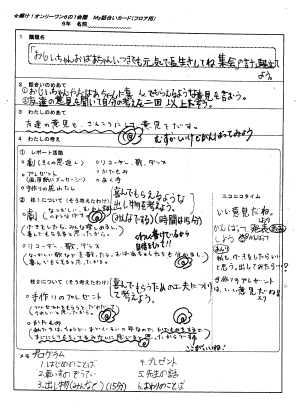 計画委員会が作成した議案書(話合いカード)に「わたしのめあて」「わたしの考え」を記入させます。 | |||||||||||||||||||||