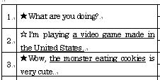 単元の新出表現など,特に定着させたい表現にはアンダーラインを引きます。