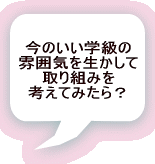 | クラスの状態と部活動の状態を合わせて見ることもできます。 (例)クラスではうまくいってないが,部活動では自分の存在を感じているようだ。 クラスでは生き生きとしているが,部活動ではつらい思いをしているようだ。 ・・・など。 |