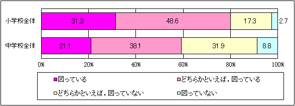 「図っている」「どちらかといえば、図っている」と回答した小学校教師の割合は79.9%、中学校教師の割合は59.2%であった。小学校の方が中学校に比べて共通理解を図っている割合が高い。[図1]