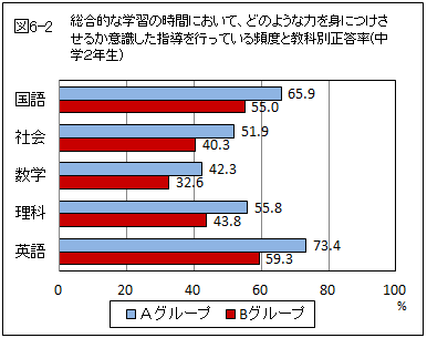 今回の調査結果から、総合的な学習の時間において、身に付けさせたい力を意識した指導を行うことによって、児童生徒の教科における学力の向上にも、よい影響を与えていることを確認することができた。学習指導要領において、総合的な学習の時間については、各教科等を横断する課題について問題解決や探究的な活動を行うことにより、児童生徒の思考力・判断力・表現力を育むとともに、各教科における基礎的・基本的な知識・技能の習得にも資するなど教科と一体となった指導が求められている。今後も、総合的な学習の時間については、これらのことを各学校や各教師が意図しつつ、指導計画や学習内容を考えながら取組の充実を図っていくことが大切である。中央教育審議会の答申(平成20年1月17日) [※1]においても、総合的な学習の時間の学校間、学校段階間の取組の実態に差があることを課題としており、学校としてのカリキュラムマネジメント能力の向上が求められている。学習指導要領の改訂に伴い、総合的な学習の時間の縮減はあるもののその重要性については、更に強調されることとなる。各学校におけるカリキュラムマネジメント能力の向上が大いに期待されるところである。