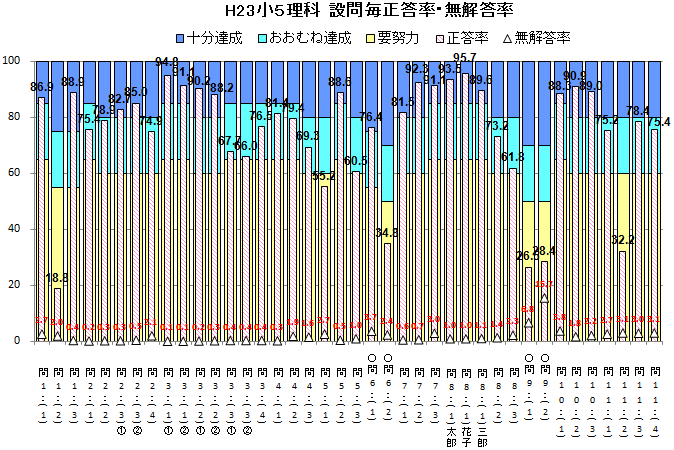 >Ⅲ 各教科の調査結果の分析>設問ごとの達成状況